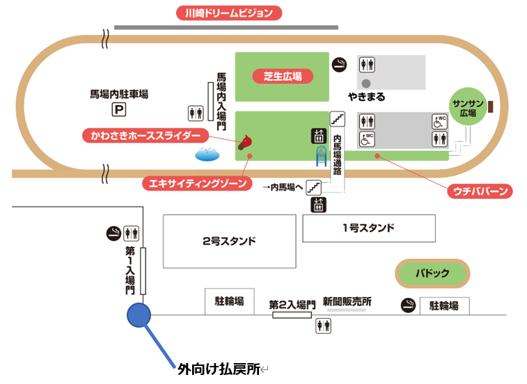 川崎競馬場で実施している外向け払戻所(第1入場門横)での払戻については、令和6年3月25日(月)をもって終了いたします。