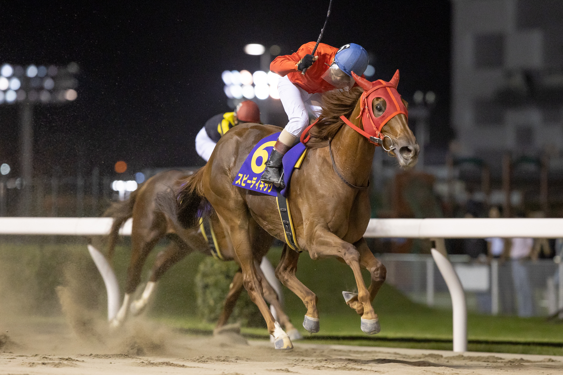 道中はそれほど隊列に変化はなく、レースが動いたのは2周目の3コーナー。ティーズハクアが押し出されるかたちで先頭に立つと、スピーディキックも続き、2頭で後続を引き離す。直線で楽に抜け出したスピーディキックが独走状態。最後は6馬身差をつけ完勝。