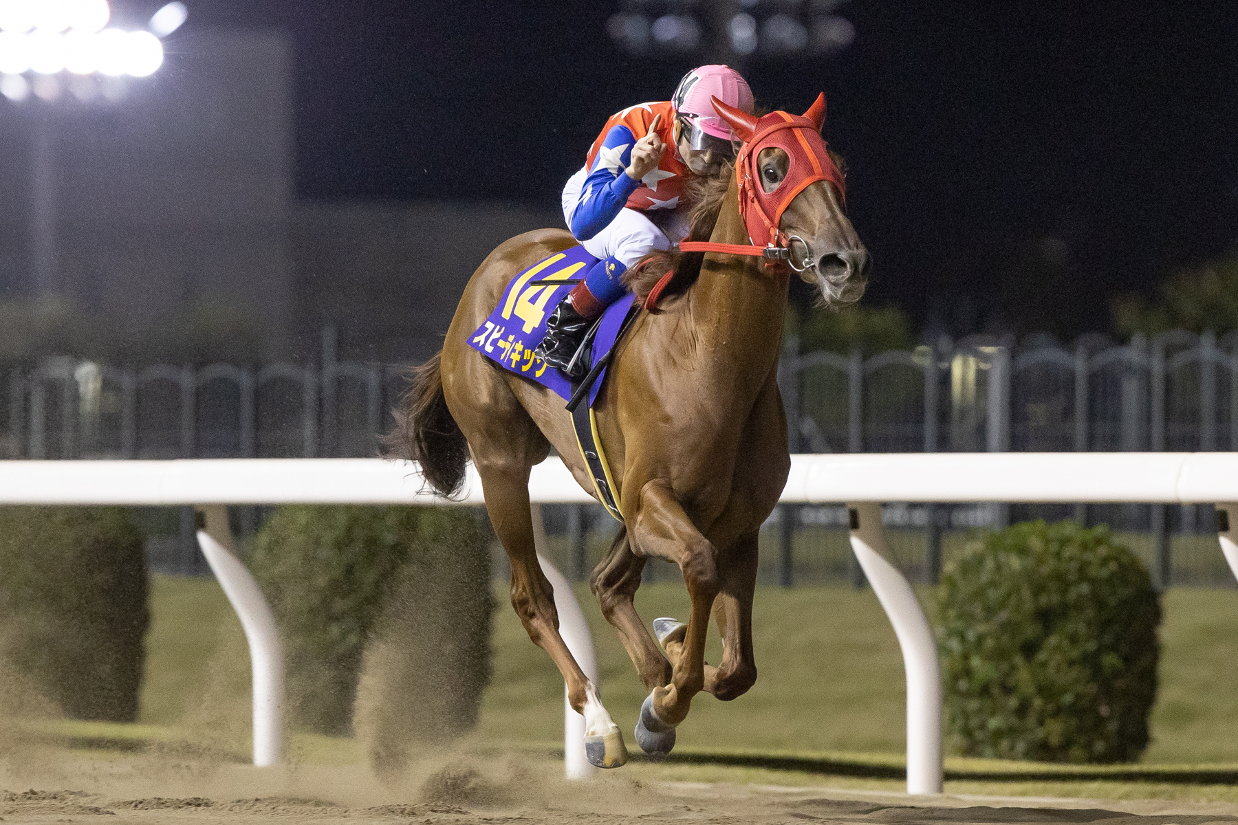 前半はインコースで脚をため、3コーナー手前で外に持ち出すと直線半ばで先頭に。後続を3馬身突き離す完勝だった。牡馬相手も足枷にはならなかった。藤原調教師、御神本騎手、末田厩務員と2002年に廃止になった益田競馬出身の“チーム益田”で、名牝ロジータの再来に挑む。